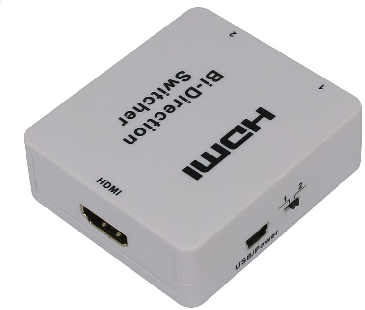 This is a device of HDMI 2 port bi-direction manual switcher. It can easily switch two routes of HD sources to any one HD display or projector. It can also distribute one HD source to two HD display or projector.