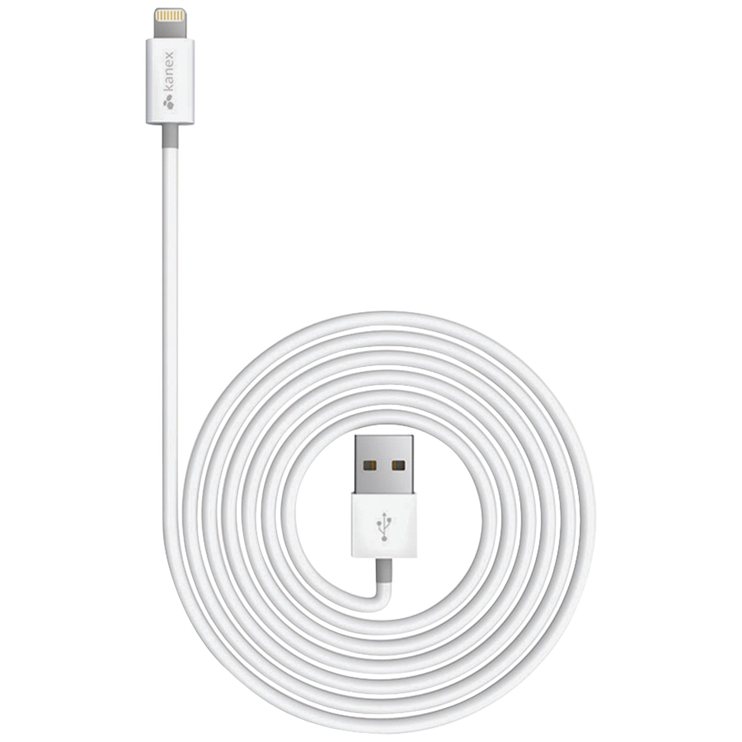 The white 4′ Kanex Lightning to USB cable connects your iPhone, iPad, or iPod with a Lightning connector to your computer’s USB port for syncing and charging. You can also connect to a USB Power Adapter to charge from a wall outlet or car charger.