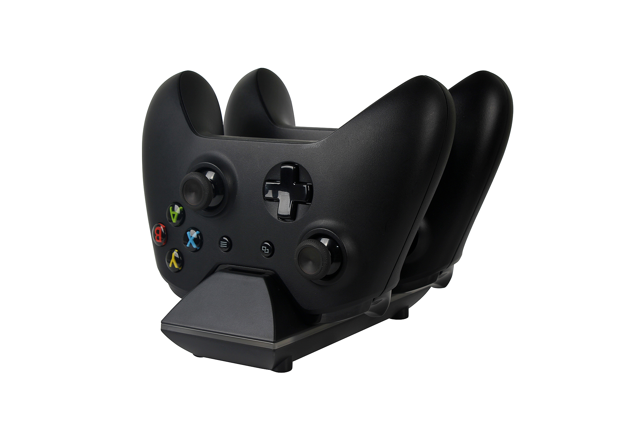 Conveniently store and charge two Xbox One Wireless Controllers with the Sparkfox Dual Charging Dock. The Charge Base comes with two rechargeable batteries that feature special contact points allowing for an easy drop-in and charge power solution for your wireless controllers. The dual port recharging dock plugs into any standard outlet, requiring no cables back to the console.